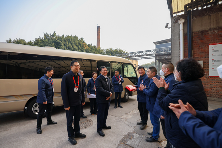 在酿酒车间,曾从钦与工匠们亲切交流,关心窖池养护、人才培养等情况,品尝新年摘出的第一杯醇香原酒,鼓励大家继续努力,培养出更多技术能手、劳模标兵。